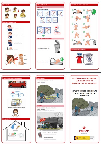 - Tríptico “Recomendaciones para la prevención de riesgos por la COVID-19. Explotaciones agríco-las en recolección de la aceituna”.