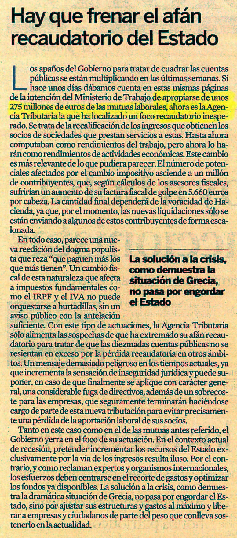 Hay que frenar el afan recaudatorio del Estado.