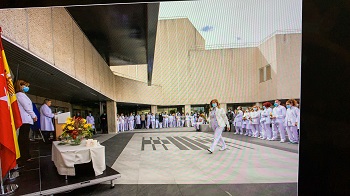 Durante el acto, Loly Soto, gerente del Hospital, ha afirmado que ‘nos hemos enfrentado a esta situación perversa con trabajo, colaboración, responsabilidad y mucho esfuerzo. Esfuerzo por parte de todos los colectivos implicados y esfuerzo por parte de nuestras familias, que han padecido nuestra ausencia, cansancio y sobrecarga emocional’.