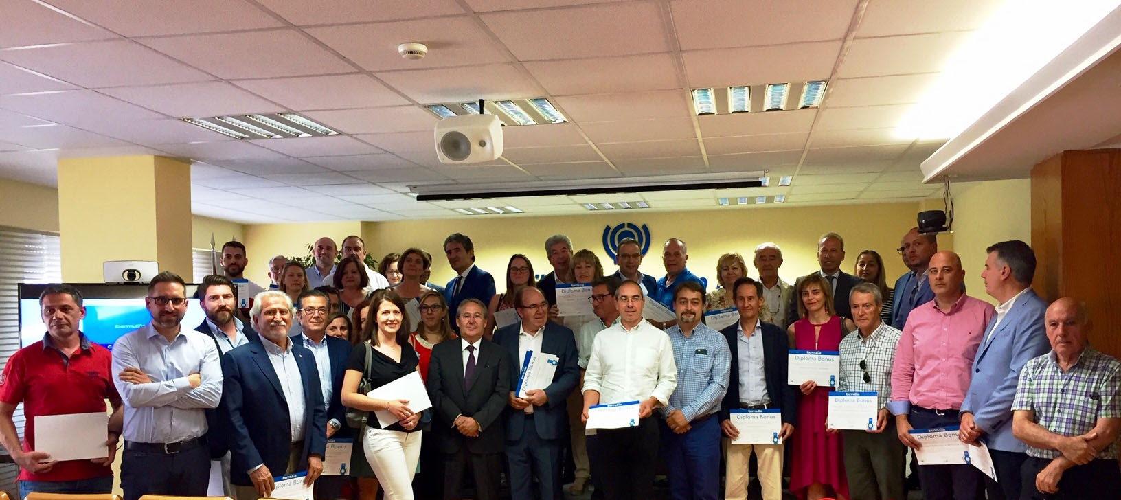 La entrega de los diplomas se llevó a cabo en el transcurso de un acto celebrado hoy por la Mutua en la sede que la entidad tiene en la capital vallisoletana, que fue presentado por Juan Carlos Díaz Aguirrezabala, presidente de la Junta Territorial de Ibermutua en Castilla y León y La Rioja, y clausurado por Rafael Tortuero Martín, director territorial de Ibermutua en Castilla y León y La Rioja. En él se contó además con las intervenciones de Jerónimo González Clavero, director provincial de la Tesorería General de la Seguridad Social e INSS en Valladolid, y Javier Calderón Pastor, director territorial de la Inspección de Trabajo y Seguridad Social en Castilla y León.