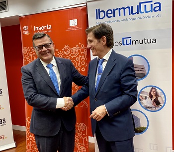 El director general de Fundación ONCE, José Luis Martínez Donoso, y el director general de Ibermutua, Heraclio Corrales Romeo, han firmado en Madrid un Convenio Inserta para fomentar el empleo de personas con discapacidad, que supondrá la participación en procesos de inserción laboral, en la mutua colaboradora con la Seguridad Social y a través del proyecto de formación y readaptación profesional a trabajadores accidentados laboralmente de empresas mutualistas, de 20 personas con discapacidad en los próximos cuatro años.