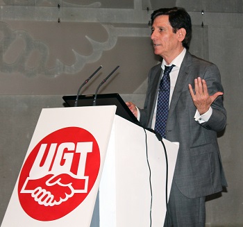Antes de la clausura, que corrio a cargo de Gonzalo Pino Bustos, secretario confederal de Politica Sindical de UGT, intervino Frederic Monell Lliro, secretario de organizacion de la Comision Ejecutiva Federal de la FeSP-UGT, quien hizo referencia e insto a la participacion en la huelga parcial convocada para el 8 de marzo con motivo del Dia de la Mujer Trabajadora.