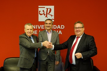 El acuerdo lo han rubricado Rafael Tortuero Martín, director territorial de Ibermutuamur en Castilla y León y La Rioja, Julio Rubio García, rector de la Universidad de La Rioja, y Máximo García Zuazo, presidente en funciones del Ilustre Colegio de Graduados Sociales de la Rioja, Este convenio a tres bandas surge del acuerdo de colaboración institucional firmado el año pasado entre Ibermutuamur con el Consejo General de Colegios de Graduados Sociales de España para la promoción de prácticas académicas externas de estudiantes universitarios de Grado de Relaciones Laborales y Recursos Humanos.