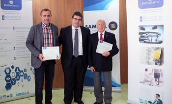 Eduardo Zurdo, director de Ibermutuamur en Baleares, ha hecho entrega de los diplomas que reconocen la singular implicacion de estas sociedades en la prevencion de riesgos laborales.