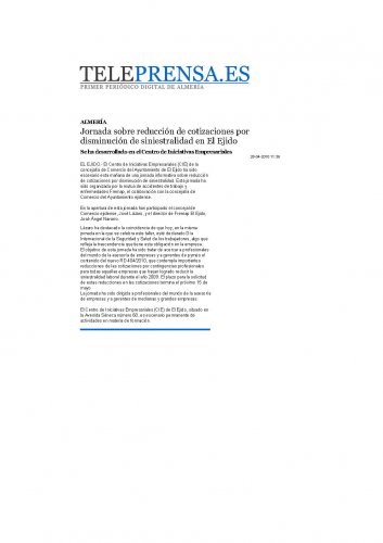 EL EJIDO.- El Centro de Iniciativas Empresariales (CIE) de la concejalia de Comercio del Ayuntamiento de El Ejido ha sido escenario esta manana de una jornada informativa sobre reduccion de cotizaciones por disminucion de siniestralidad. Esta jornada ha sido organizada por la mutua de accidentes de trabajo y enfermedades Fremap, el colaboracion con la concejalia de Comercio del Ayuntamiento ejidense.