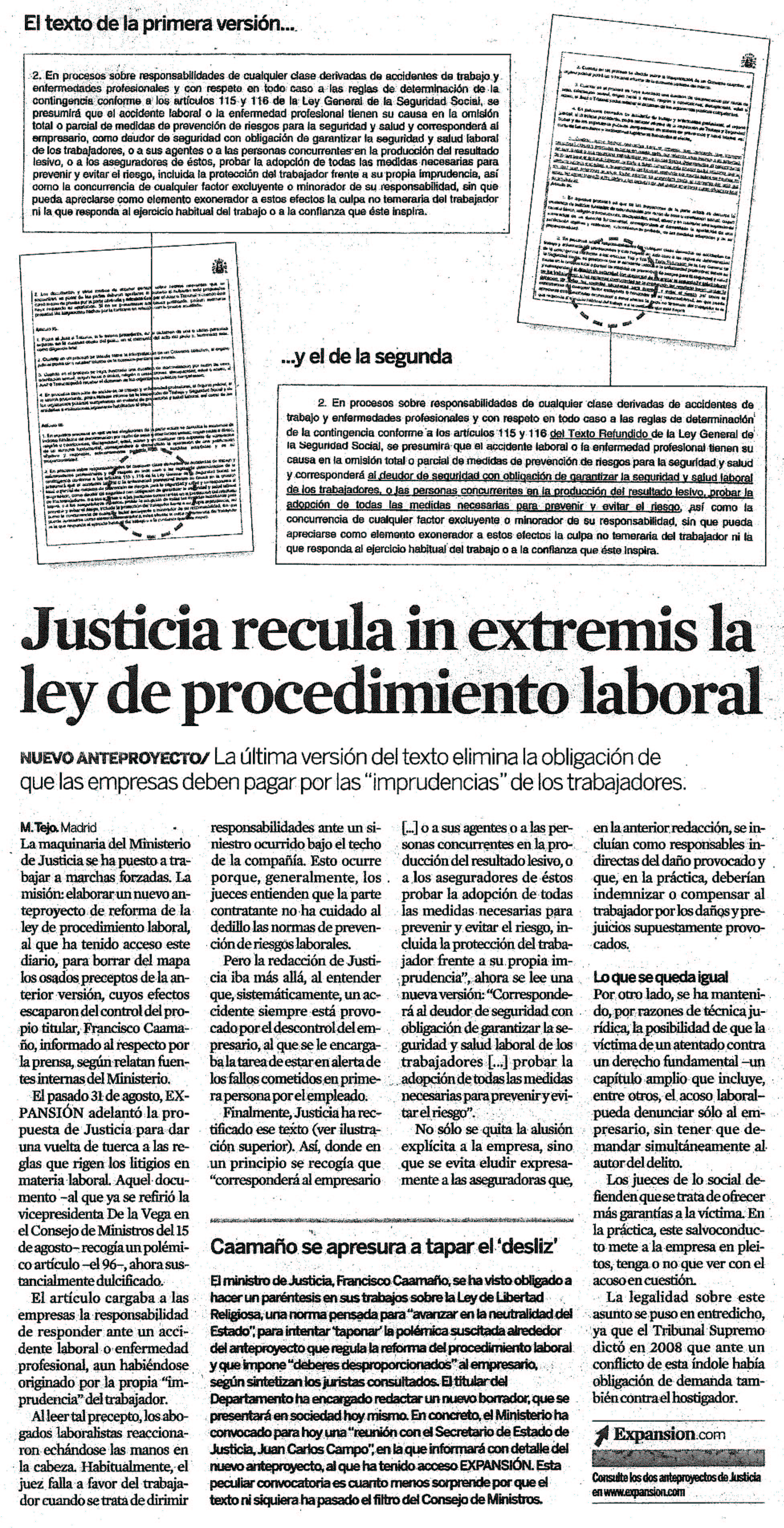 La ultima version del texto elimina la obligacion de que las empresas deben pagar por las «imprudencias» de los trabajadores.