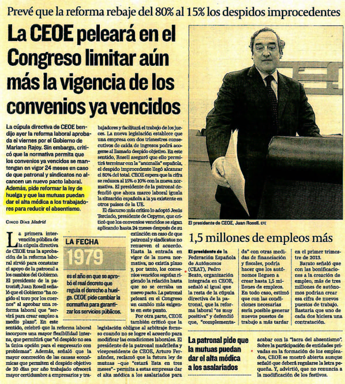 La CEOE peleara en el Congreso limitar aun mas la vigencia de los convenios ya vencidos.