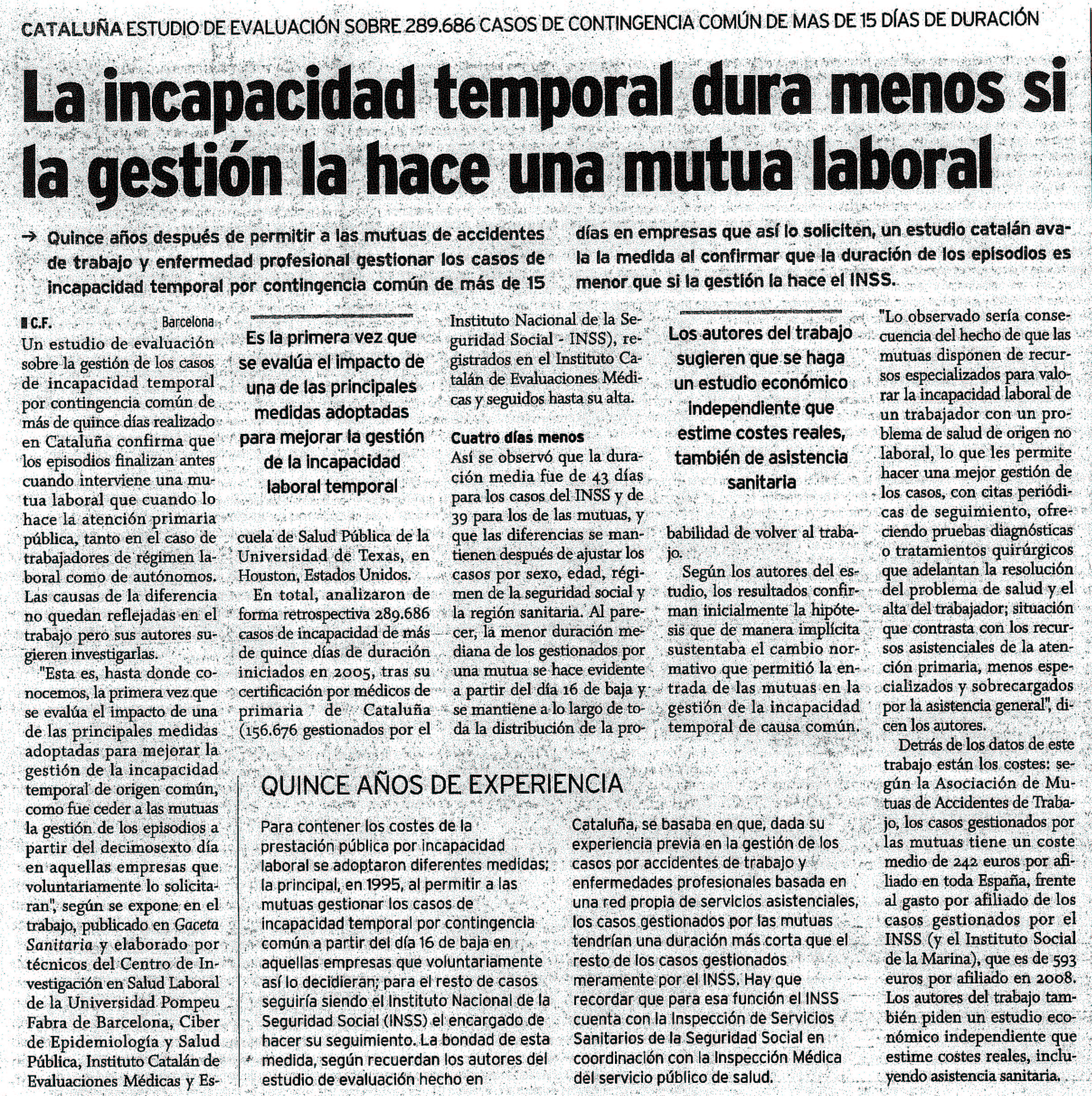 La incapacidad temporal dura menos si la gestion la hace una mutua laboral.