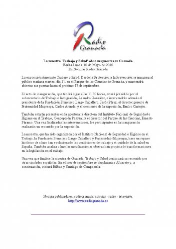 La exposición itinerante Trabajo y Salud: Desde la Protección a la Prevención se inaugura al público mañana martes, día 11, en el Parque de las Ciencias de Granada, y mantendrá abiertas sus puertas hasta el próximo 17 de septiembre.