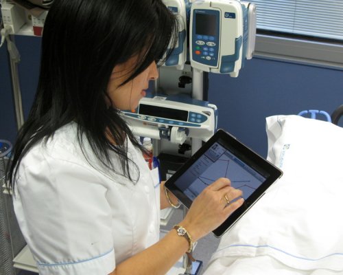 En quirofano y plantas, se consultan los resultados de las analiticas, se toman las constantes y se visualiza toda la historia electronica y digitalizada del paciente a traves una aplicacion disenada exclusivamente para iPad.