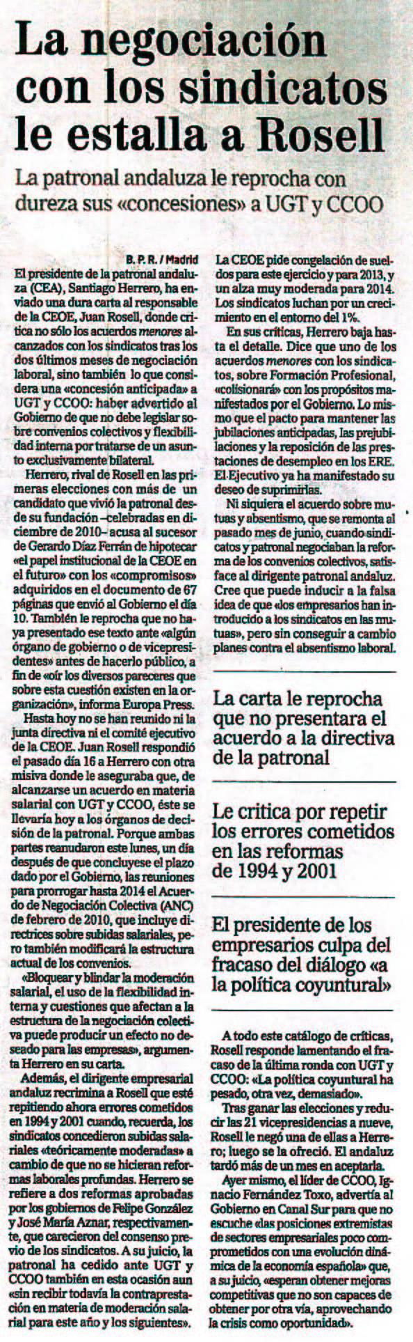 La patronal andaluza le reprocha con dureza sus «concesiones» a UGT y CC.OO.