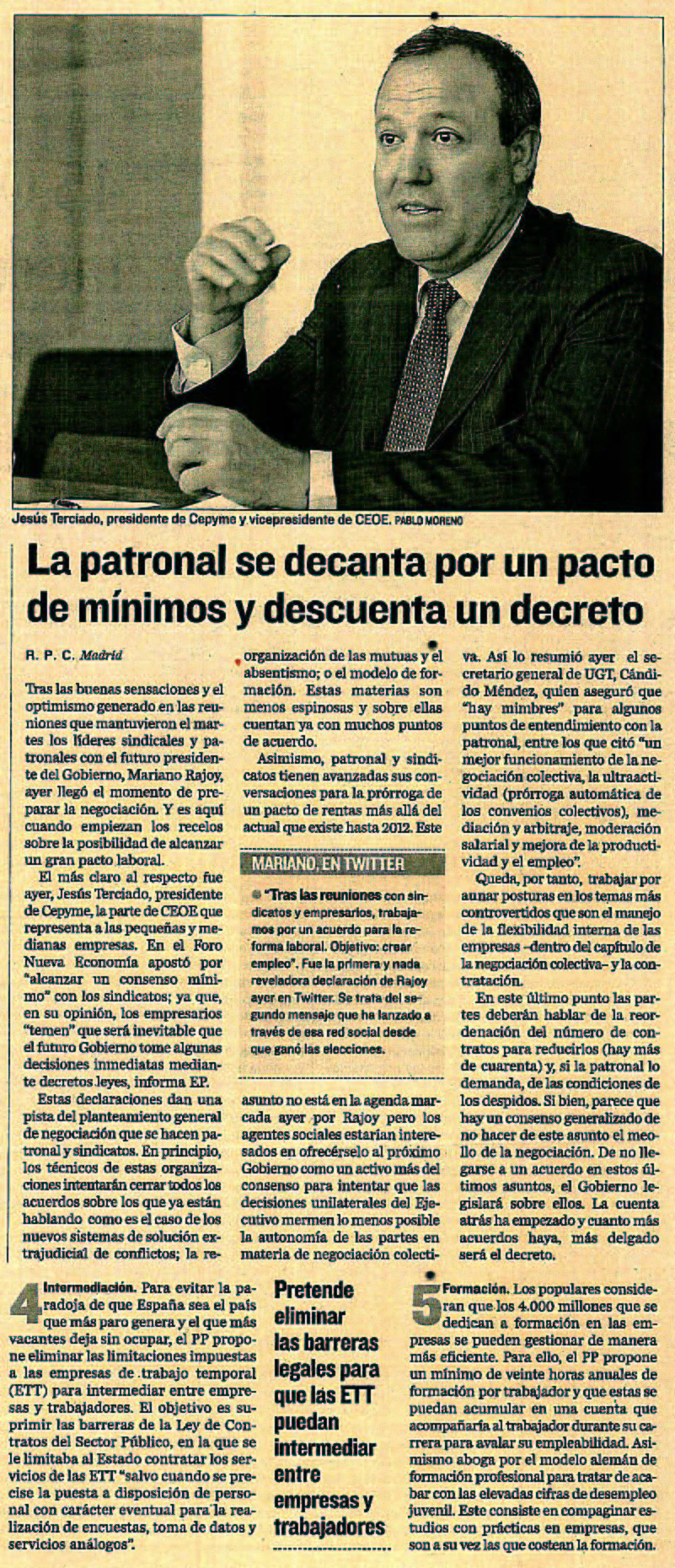 La patronal se decanta por un pacto de minimos y descuenta un decreto