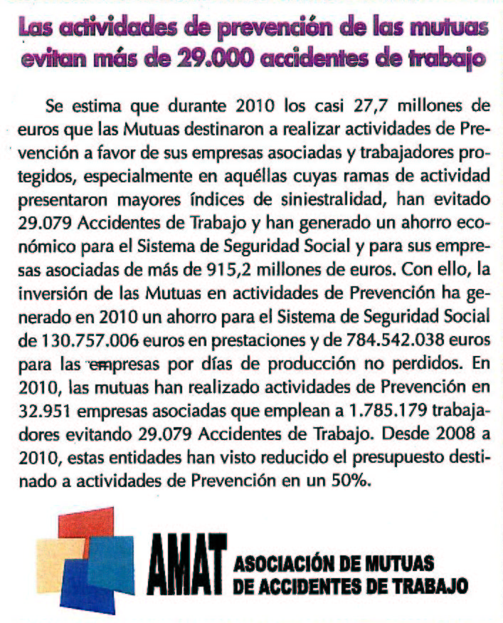 Las actividades de prevencion de las Mutuas evitan mas de 29.000 accidentes de trabajo.
