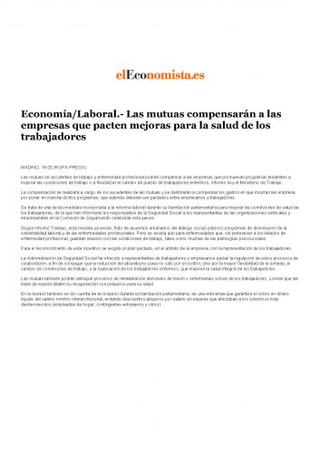 Las mutuas de accidentes de trabajo y enfermedad profesional podrán compensar a las empresas que promuevan programas tendentes a mejorar las condiciones de trabajo o a flexibilizar el cambio de puesto de trabajadores enfermos, informó hoy el Ministerio de Trabajo.