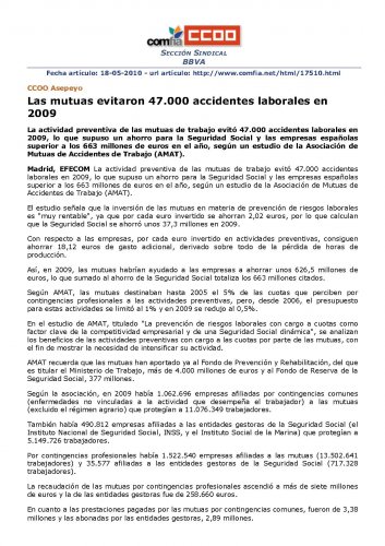 La actividad preventiva de las mutuas de trabajo evitó 47.000 accidentes laborales en 2009, lo que supuso un ahorro para la Seguridad Social y las empresas españolas superior a los 663 millones de euros en el año, según un estudio de la Asociación de Mutuas de Accidentes de Trabajo (AMAT).