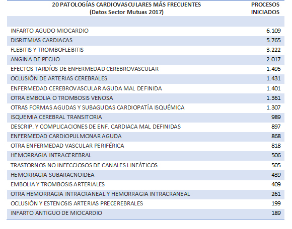 Durante el pasado año más de 6.000 trabajadores sufrieron un infarto de miocardio, mientras que 5.765 presentaron algún tipo de disritmia. A estas patologías le siguen las flebitis y tromboflebitis, la angina de pecho y los efectos tardíos de alguna enfermedad cerebrovascular.