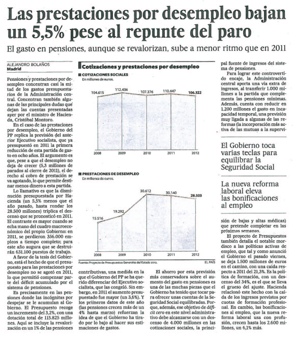 Las prestaciones por desempleo bajan un 5,5% pese al repunte del paro.