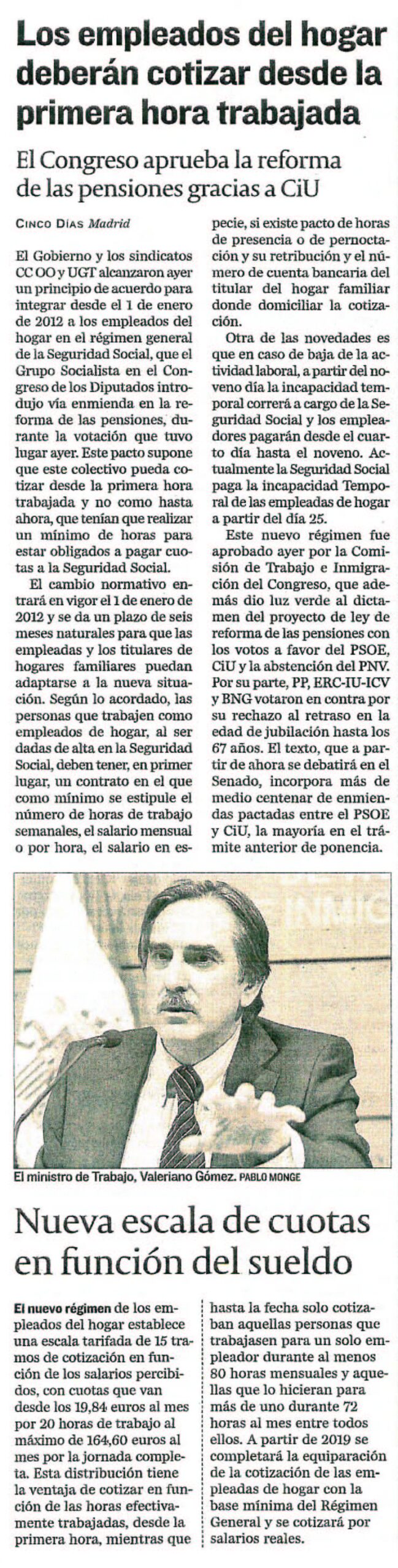 Los empleados del hogar deberan cotizar desde la primera hora trabajada.