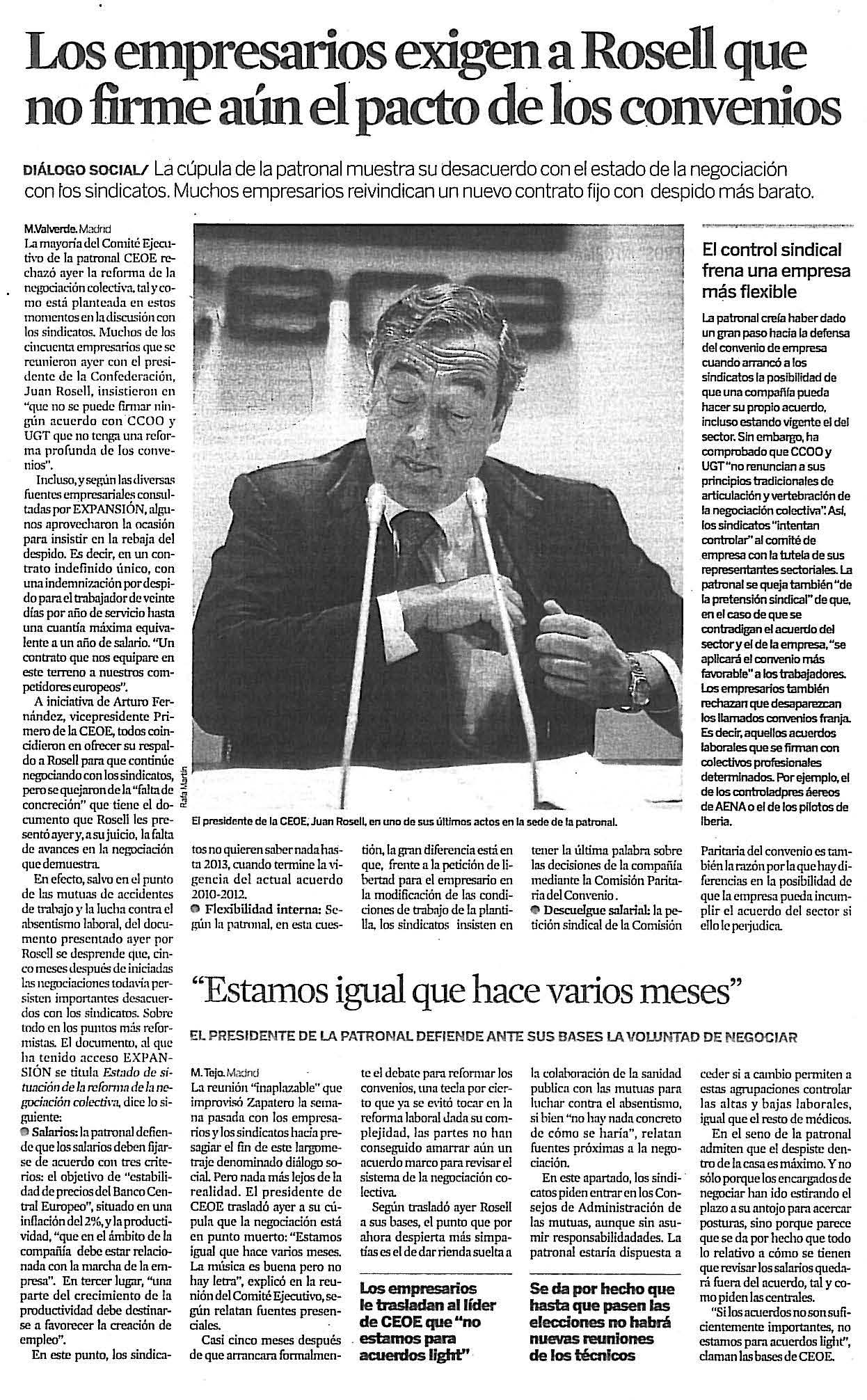 Los empresarios exigen a Rosell que no firme aun el pacto de los convenios