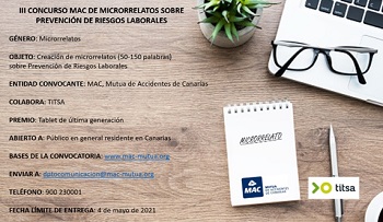 Asimismo, y también con el apoyo de TITSA, MAC lanza su tercer concurso de microrrelatos sobre Prevención de Riesgos Laborales.