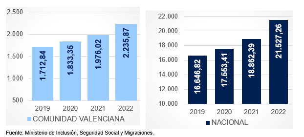 A nivel nacional, en 2022, el coste en prestaciones económicas de la Seguridad Social y el coste directo para las Empresas supuso un gasto superior a 21.527 millones de euros. Este gasto ha aumentado más de 2.600 millones de euros con respecto al ejercicio 2021, y 4.880 millones de euros con respecto a 2019. A nivel autonómico, este gasto ascendió a más de 2.235 millones de euros. Más de 260 millones de euros con respecto a 2022 y 523 millones de euros más que en 2019.