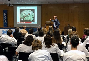 La jornada tuvo lugar en el Salón de Actos del Hospital MAZ y contó con las ponencias del doctor José Vicente Martínez Quiñones, Coordinador del Consejo científico de la Asociación y Neurocirujano del Hospital MAZ, el doctor Ignacio Jaúregui, director del Título de Experto en Trastornos de la Conducta Alimentaria y Obesidad de la UPO y Mar Martínez, Presidente de la Asociación Española de Storytelling.