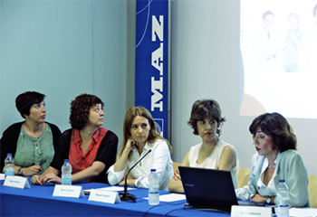 En esta ocasion, se han debatido los beneficios que el arte tiene como complemento al desarrollo y recuperacion de las personas enfermas. Por ello, hoy han compartido su conocimiento y experiencias con todos los asistentes a Jornada: Agnes Daroca, ilustradora; Raquel Zapater, directora de Enfermeria del Hospital MAZ; y Ana Gloria Remiro, tecnico en Cuidados Auxiliar de Enfermeria en el mismo hospital.