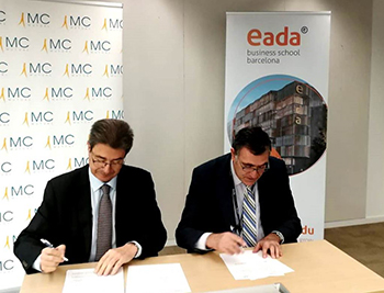 MC MUTUAL, mutua colaboradora con la Seguridad Social n 1, y EADA Business School, prestigiosa escuela de negocios ubicada en Barcelona, han firmado un acuerdo de colaboracion con el objetivo de aunar esfuerzos y favorecer el avance y la transferencia de conocimiento en el campo de las relaciones laborales.