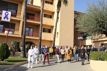 El acto de apoyo institucional ha estado encabezado por la dirección de la mutua que junto con los trabajadores y trabajadoras se han concentrado, a las 12 del mediodía, respetando las medidas de seguridad y restricciones derivadas de la pandemia del Covid-19.