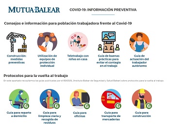 El nuevo apartado de información preventiva sobre el COVID-19, que se encuentra ya disponible en la web de Mutua Balear, recoge guías enfocadas a todo tipo de trabajos y sectores de actividad.