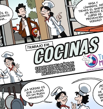 Mutua Balear ha publicado las primeras viñetas de un original cómic que tiene por objetivo fomentar la prevención de riesgos laborales en aquellas profesiones de la hostelería que desempeñan sus funciones en la cocina. A través de la historia de sus dos protagonistas, Ana, cocinera, y Andrés, ayudante Mutua Balear ha publicado las primeras viñetas de un original cómic que tiene por objetivo fomentar la prevención de riesgos laborales en aquellas profesiones de la hostelería que desempeñan sus funciones en la cocina.