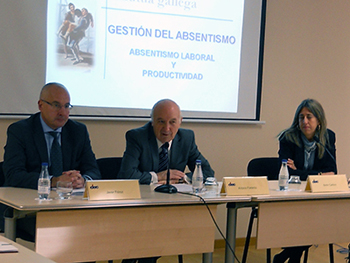 Javier Florez Arias, Director Gerente de Mutua Gallega, y Belen Cartimil Neira Directora Medica de Contingencias Comunes, analizaron el absentismo laboral, sus causas, consecuencias y posibles soluciones en la sede de la Confederacion de Empresarios de A Coruna. Cuando hablamos de absentismo laboral nos referimos a toda ausencia de una persona de su puesto de trabajo en horas que corresponden a un dia laborable dentro de la jornada legal de trabajo.