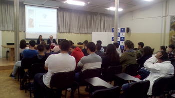 Unos sesenta alumnos del ciclo superior de Prevencion de Riesgos Profesionales del instituto IES Universidade Laboral de Culleredo, asistieron a una charla sobre el trabajo que desempena una mutua y su relacion con la Seguridad Social, impartida por Olaya Lopez, Directora de Organizacion y Control de Mutua Gallega y Cristobal Pinon, Director de Prestaciones de la misma entidad.