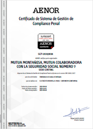 Mutua Montañesa, mutua colaboradora con la Seguridad Social número 7 y con más de un siglo de vida dedicado a la gestión de la salud laboral de sus empresas y trabajadores protegidos, anuncia que ha obtenido el certificado de AENOR que acredita que la organización dispone de un Sistema de Gestión de Compliance Penal de acuerdo a la norma UNE 19601:2017.