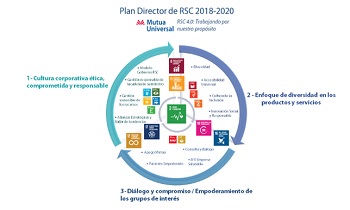 Mutua Universal, mutua colaboradora con la Seguridad Social, ha finalizado el desarrollo de su Plan Director de RSC 2018-2020: “RSC 4.0: Trabajando por nuestro propósito”. Este plan nace del compromiso de la Entidad de atender a las necesidades de sus grupos de interés y dar respuesta a la realidad social actual, marcada por el avance de las nuevas tecnologías y del paradigma 4.0, así como por los grandes retos relacionados con la salud, el bienestar, el empleo y el cambio climático.