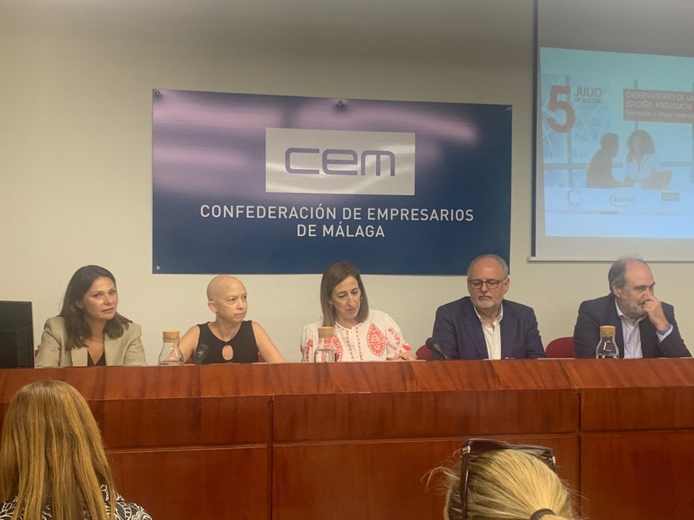 - La jornada ha contado con la representación institucional de la vicepresidenta ejecutiva de la Confederación de Empresarios de Málaga, la directora del Instituto Andaluz de la Mujer, el viceconsejero de Salud y Consumo de la Junta de Andalucía y la delegada territorial de Inclusión Social, Juventud, Familias e Igualdad de la Junta de Andalucía