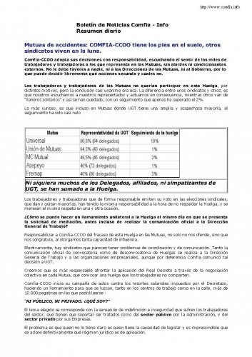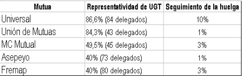 Lo más curioso, es que incluso en Mutuas donde UGT tiene una amplia y sospechosa mayoría, el seguimiento ha sido casi nulo