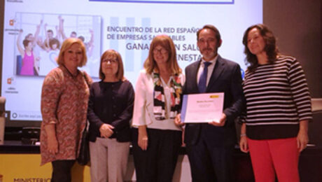 Fuente: UNION DE MUTUAS Durante el acto de celebracion del III Encuentro de la Red Espanola de Empresas Saludables, que organiza anualmente el Instituto Nacional de Seguridad e Higiene en el Trabajo El Ministerio de Empleo ha entregado a Unión de Mutuas el premio "Empresa Saludable" en la categoría de Buenas Prácticas de Promoción de