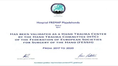 El Hospital FREMAP de Majadahonda (Madrid) ha sido reconocido como Hand Trauma Center, maxima acreditacion europea en cirugia de mano