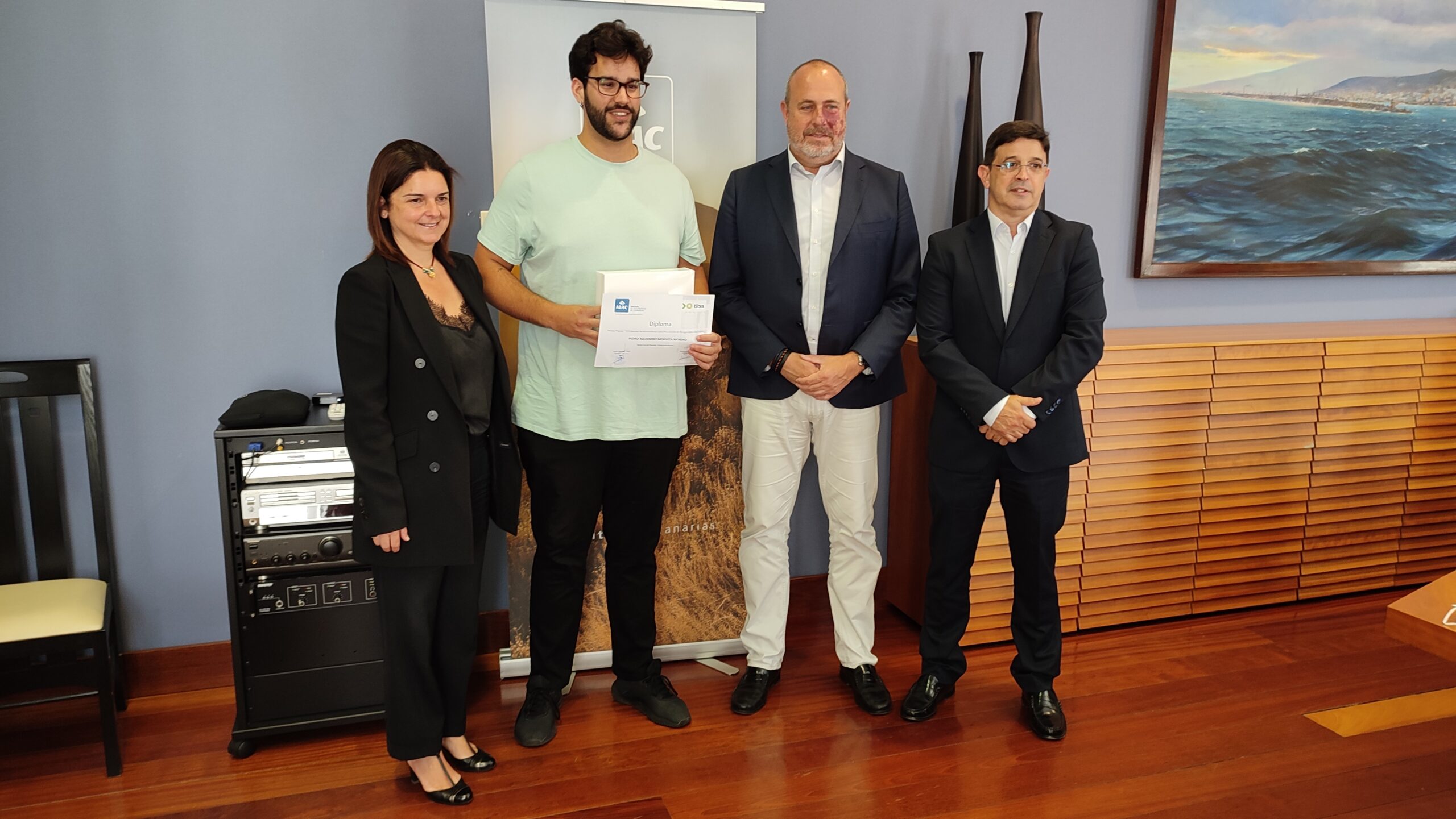 Santa Cruz de Tenerife (08 de junio de 2022).- Pedro Alejandro Mendoza Moreno, estudiante de 4º curso del Grado de Sociología de la Universidad de La Laguna, recibió hoy de manos del director-gerente de la Mutua de Accidentes de Canarias, Javier González Ortiz, de la gerente de TITSA, Raquel Martínez, y del vicepresidente 1º del Cabildo de Tenerife, Enrique Arriaga, el premio que le acredita como ganador del IV Concurso de microrrelatos sobre Prevención de Riesgos Laborales (PRL) organizado por MAC en colaboración con la empresa pública de transportes TITSA. “La voz de la experiencia” es el título del trabajo ganador, que fue elegido por un jurado compuesto por los miembros del departamento de Comunicación y RSC de MAC.