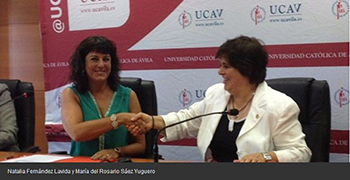 El convenio ha sido suscrito por Maria del Rosario Saez Yuguero, Rectora de la UCAV, y Natalia Fdez. Laviada, Subdirectora General de Organizacion y Red de Fraternidad Muprespa; quien aprovecho la ocasion para felicitar a la Universidad por su dedicacion y compromiso con los estudiantes ofreciendoles las mejores profesionales para su formacion, tarea que Fraternidad Muprespa reforzara mostrando la praxis del trabajo desarrollado en la entidad. Un compromiso que la mutua ofrece satisfactoriamente colaborando con instituciones y mutualistas en suplir las demandas informativas y formativas de estos, y que Fraternidad Muprespa, por su quehacer diario, conoce.