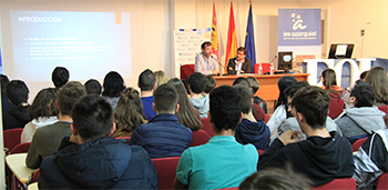 Más de cien alumnos pertenecientes a ESO, Bachillerato y Ciclos Formativos de este centro educativo han participado en la Conferencia Inaugural "Espalda: dolor y prevención" realizada por el Dr. Alejandro García-Asenjo, Director Médico del Hospital San José de Solimat, Mutua Colaboradora con la Seguridad Social nº 72. El Director del Centro, D. Jesús García Novillo ha dado la bienvenida a todos los estudiantes y ha destacado la importancia de la prevención de riesgos laborales. Por su parte, el Dr. García-Asenjo, en su intervención, ha mostrado a los alumnos una visión profesional y completa de la anatomía de la espalda, repasando las causas más frecuentes del dolor y mostrando las medidas preventivas generales a adoptar.