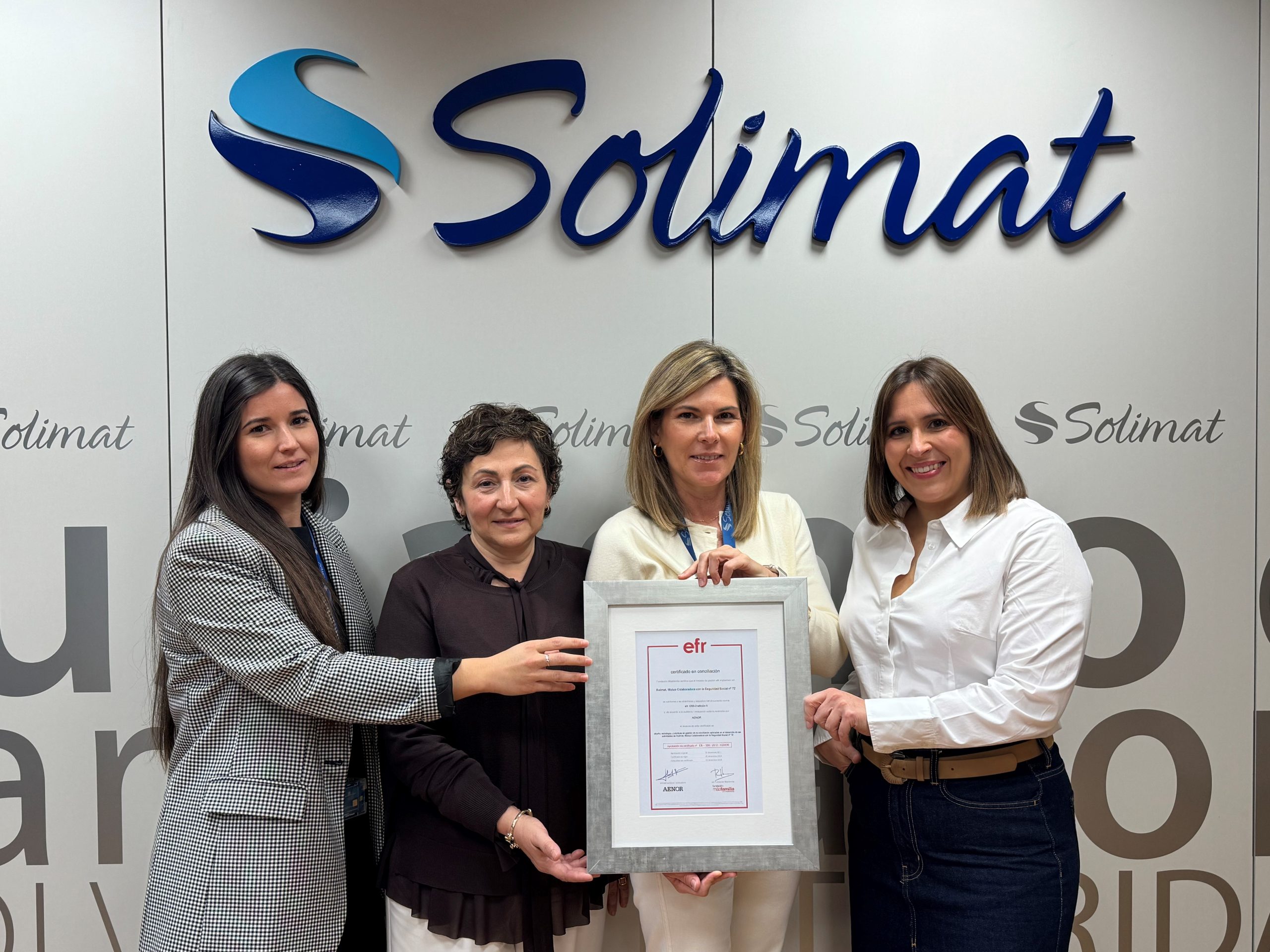 Solimat renueva la certificación efr, que acredita su compromiso con la conciliación, la transformación social y la sostenibilidad
