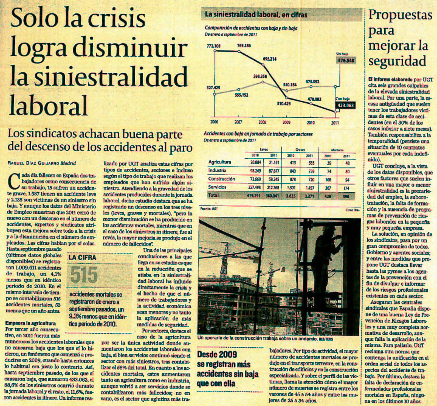 Solo la crisis logra disminuir la siniestralidad laboral.