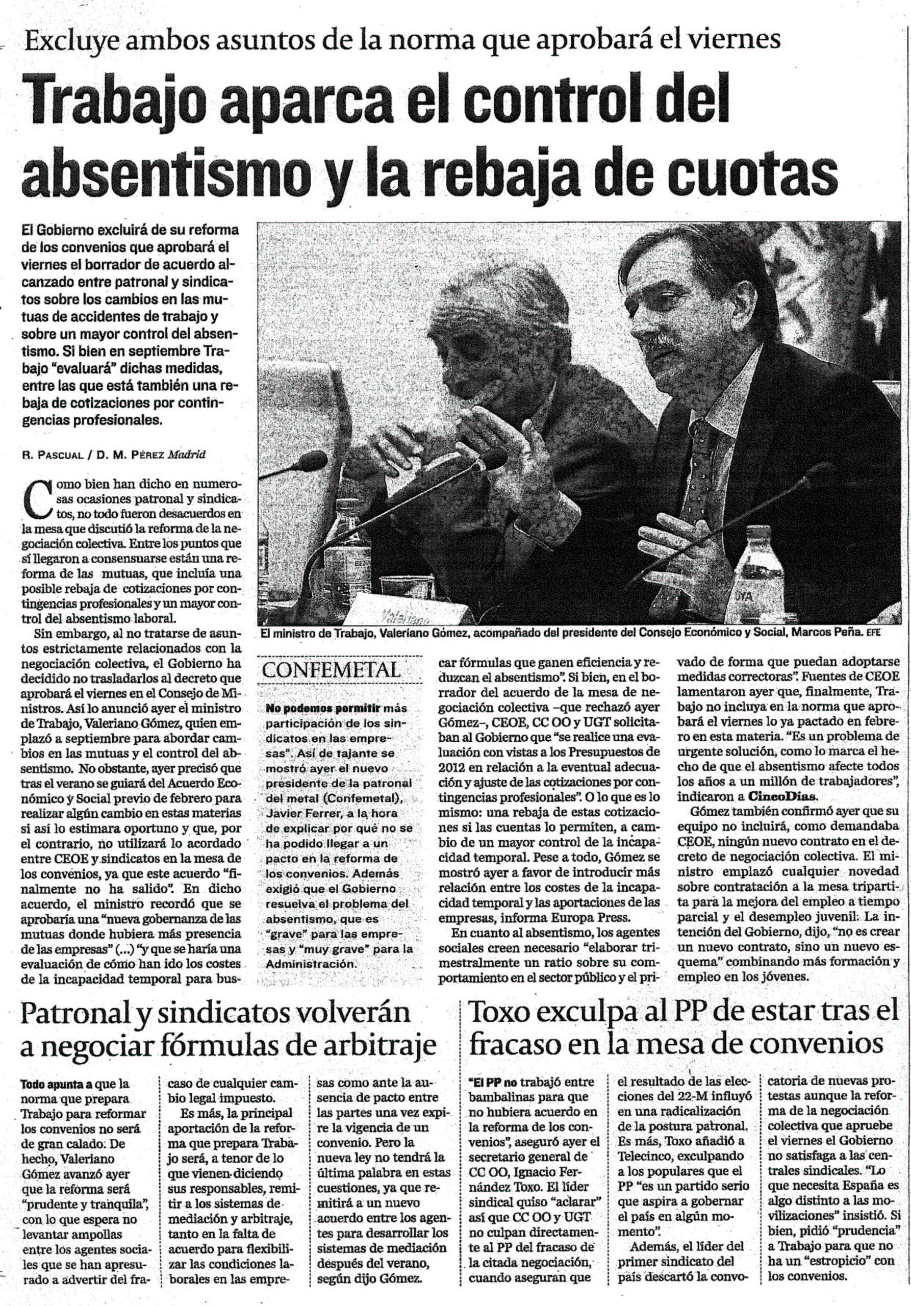 Trabajo aparca el control del absentismo y la rebaja de cuotas.