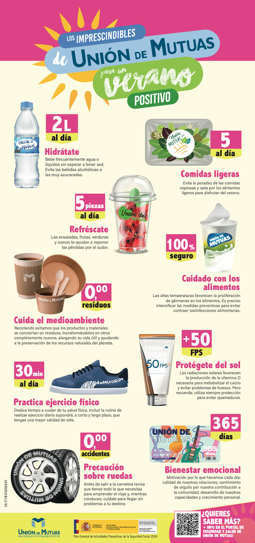 • La campaña ‘Los imprescindibles de Unión de Mutuas para un verano positivo’ no solo proporciona herramientas prácticas, sino que también promueve una cultura de prevención.
